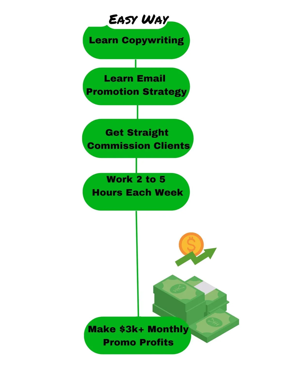 Instead, all you need to do is write simple, persuasive promo emails for clients who happily pay you commissions every time your emails bring them sales.
