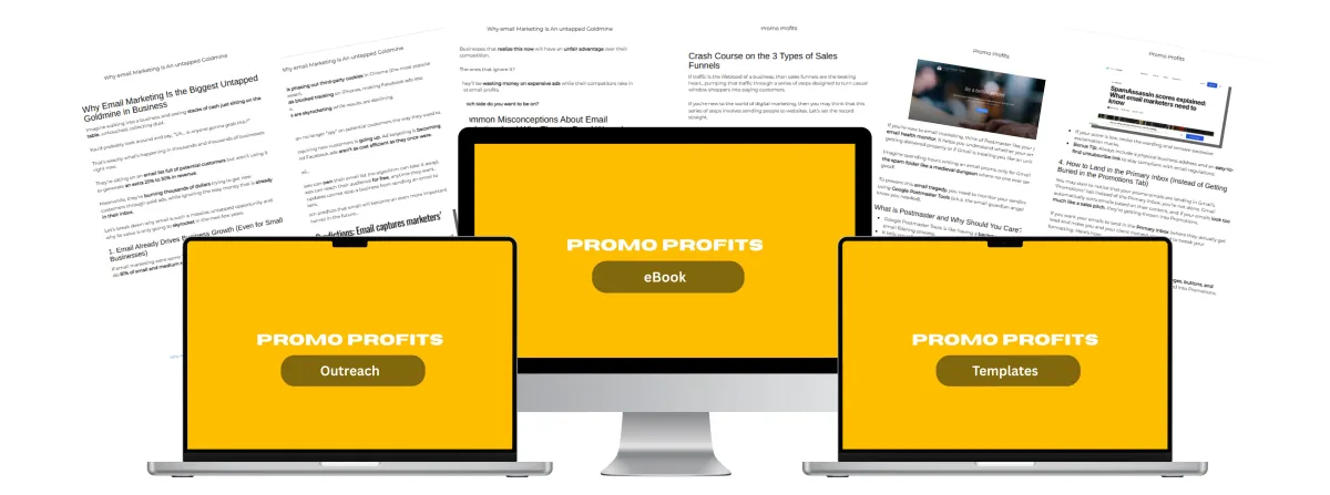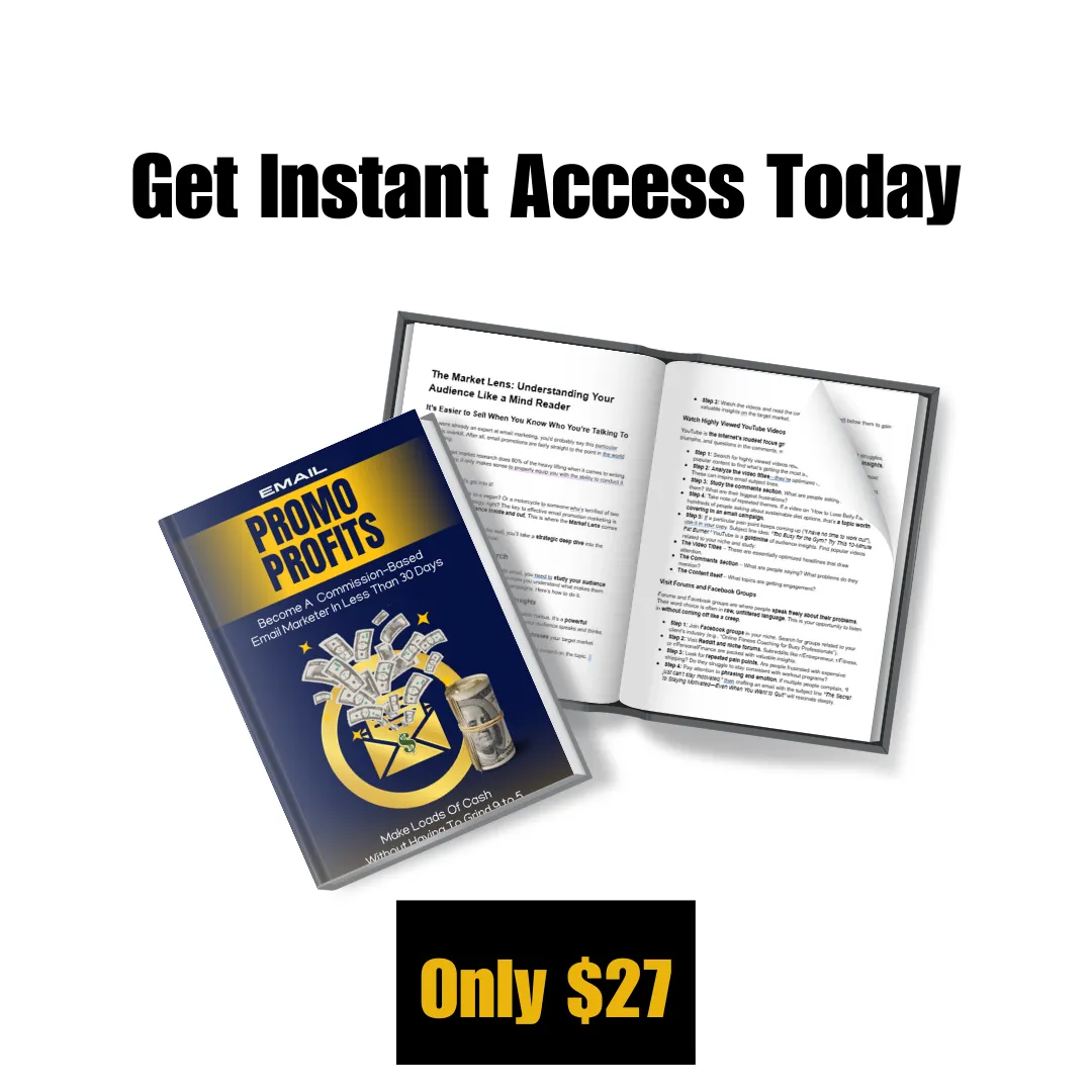 Promo Profits gives you a proven, step-by-step system to create a lucrative side hustle or full-time income as a performance-based email marketer. You’ll be equipped with all the tools, templates, and strategies you need to succeed.
